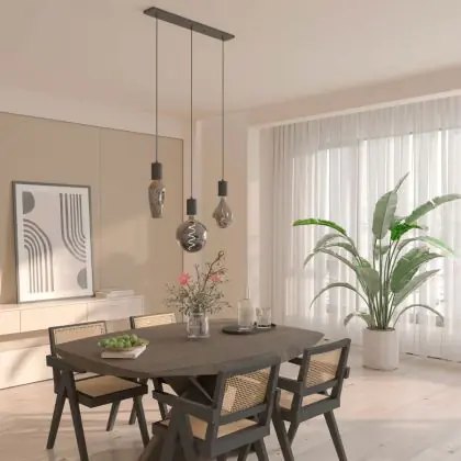 | Fabrikantnaam | Calex Retro pendant lamp with ceiling plate rectangular 10x70cm, black fitting 3xE27 (2 meter cord) | |