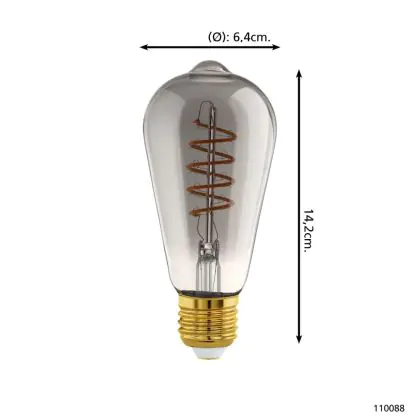 Beschrijving Eglo LED Edison E27 Filament Smokey 4W 100lm - 820 Zeer Warm Wit | Dimbaar - Vervangt 15W