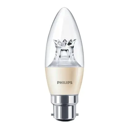 Beschrijving Philips MASTER LED Kaars B22 Kroon Gebogen-tip Helder 4W 250lm - 822-827 Dim To Warm | Dimbaar - Vervangt 40W