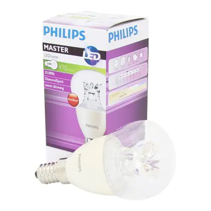 Beschrijving Philips MASTER LED Lustre E14 Kogel Kroon Helder 5.5W 470lm - 822-827 Dim To Warm | Dimbaar - Vervangt 40W