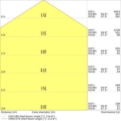 De lichtopbrengst (Lumen), geeft weer hoe krachtig het uitgestraalde licht is. Dit is belangrijk om te weten om de juiste sfeer te creëren. 0 tot 400 Lumen is bij uitstek geschikt voor accent- of sfeerverlichting. Een hoger aantal Lumen is, afhankelijk van de grootte van de ruimte, beter geschikt als ondersteunende- of basisverlichting. Heb je plafonds hoger dan 4 meter, dan is een lichtopbrengst van minimaal 8000lm aan te raden indien heldere verliching gewenst is (vb. in werkomgevingen).
